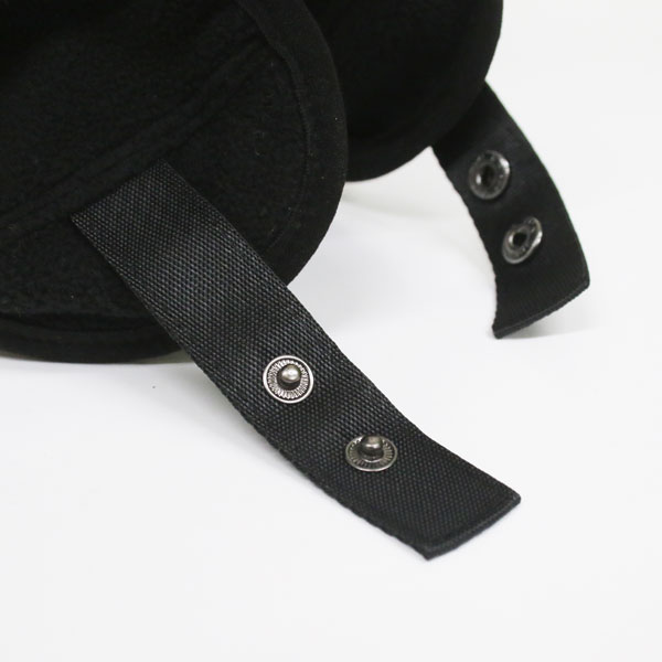 ビーニーのトップは厚めのフリース、内側とイヤーフラップは目の細かい肌触り良いフリースになっています。イヤーフラップにはボタンが付いているので顎下や頭頂部で留めて被り事も可能になっています。イヤーフラップ自体も後頭部部分はやや長くなっていて首元も覆うような仕様になっています。意外と雪が降っている時って首の後ろに雪が入って冷たい経験をしたこともありますよね。すごく考えられて造っていると思います。